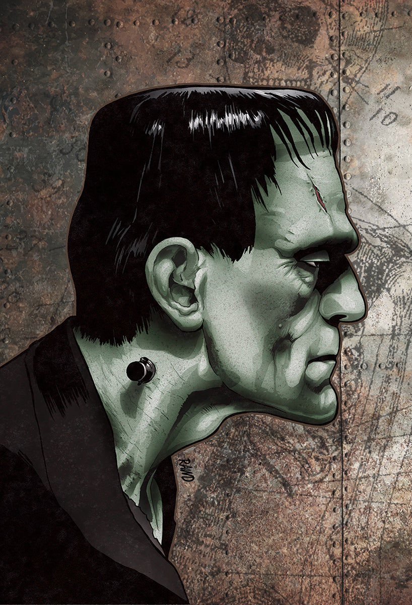 This sophisticated print features a detailed portrait of Frankenstein's monster, blending classic horror with refined artistry. Ideal for those who appreciate timeless characters presented with elegance, this artwork enriches any room with a touch of dramatic allure and cultured charm.