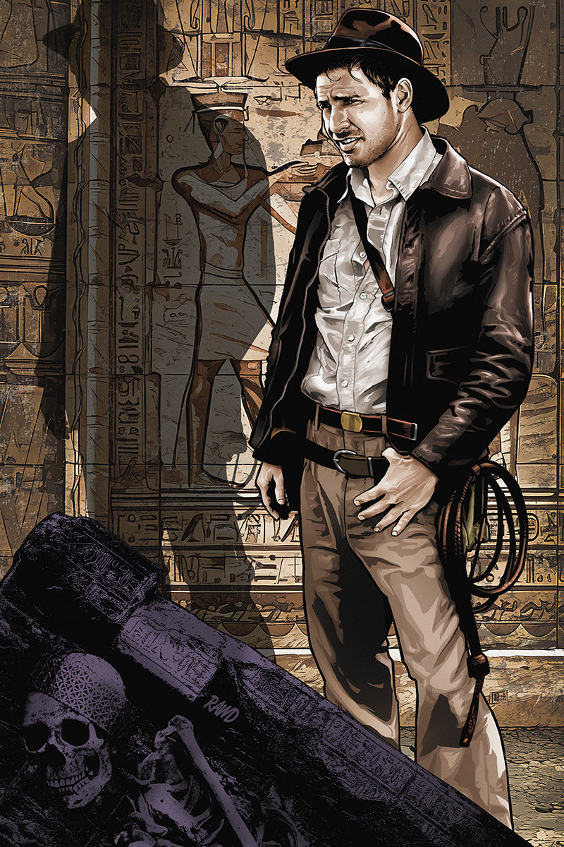 Capture the adventure with this playful print inspired by Indiana Jones: Raiders of the Lost Ark. Perfect for fans, it brings iconic excitement and nostalgia to any room, making your walls the ultimate treasure trove of movie magic.
