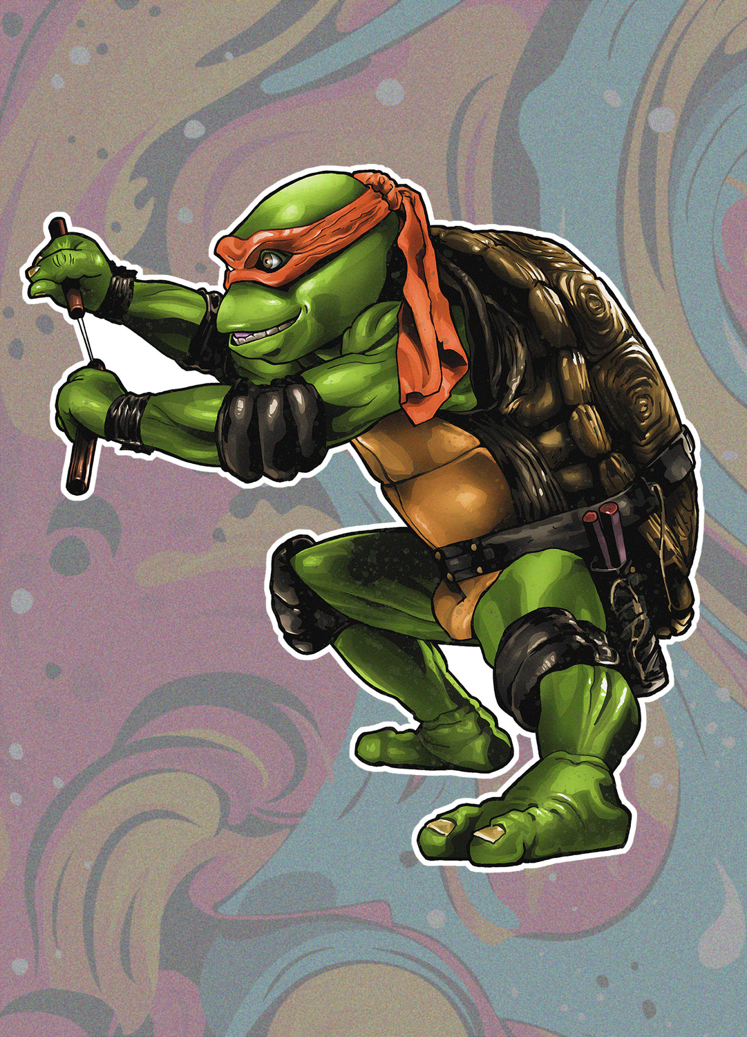 Bring some turtle power to your gear with this 4.5" Mikey decal! Perfect for adding a splash of fun to laptops, water bottles, or skateboards, it captures Michelangelo’s playful spirit in vibrant detail. Easy to apply and durable, this sticker lets you show off your love for the Teenage Mutant Ninja Turtles in style. Cowabunga!