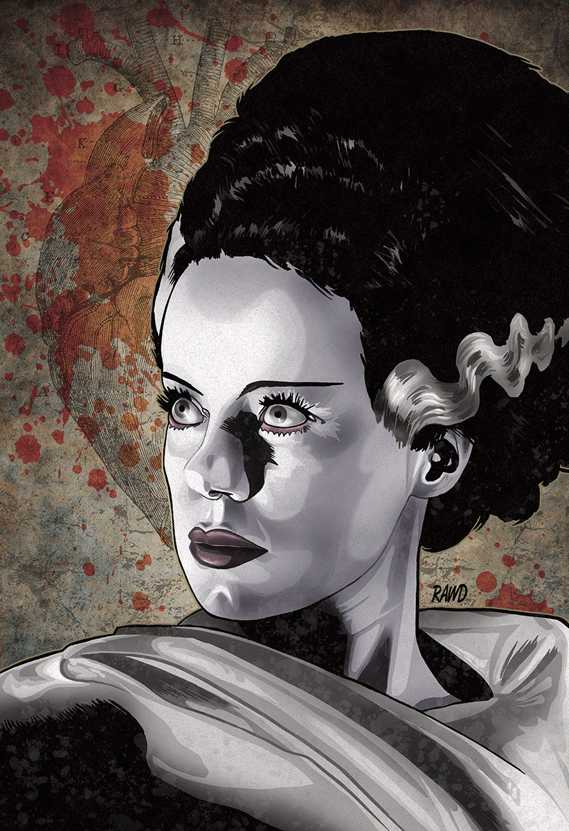 Embrace the bold spirit of classic horror with "The Bride," a daring print featuring the iconic Bride of Frankenstein. This striking piece channels vintage monster energy, perfect for adding a fearless, legendary touch to your décor. Make a statement with this timeless symbol of power and mystery.